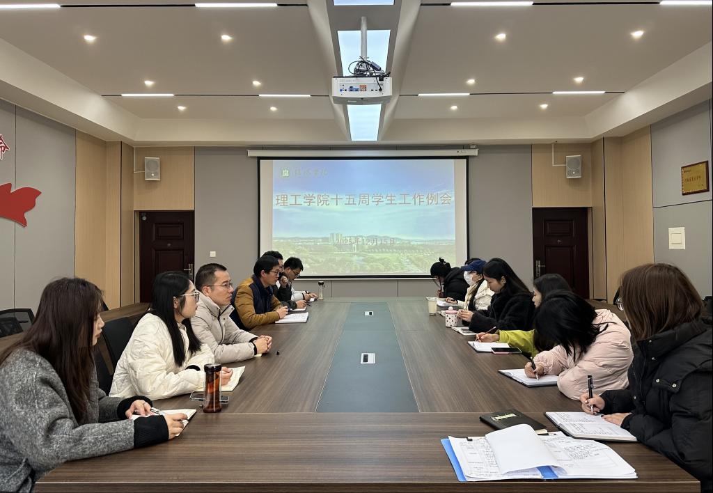 12月15日,理工学院在理工楼201会议室召开本学期第十五周学生工作例会。会议由杨晓杰主持,全体辅导员参加了此次会议,会议由杨晓杰主持。
