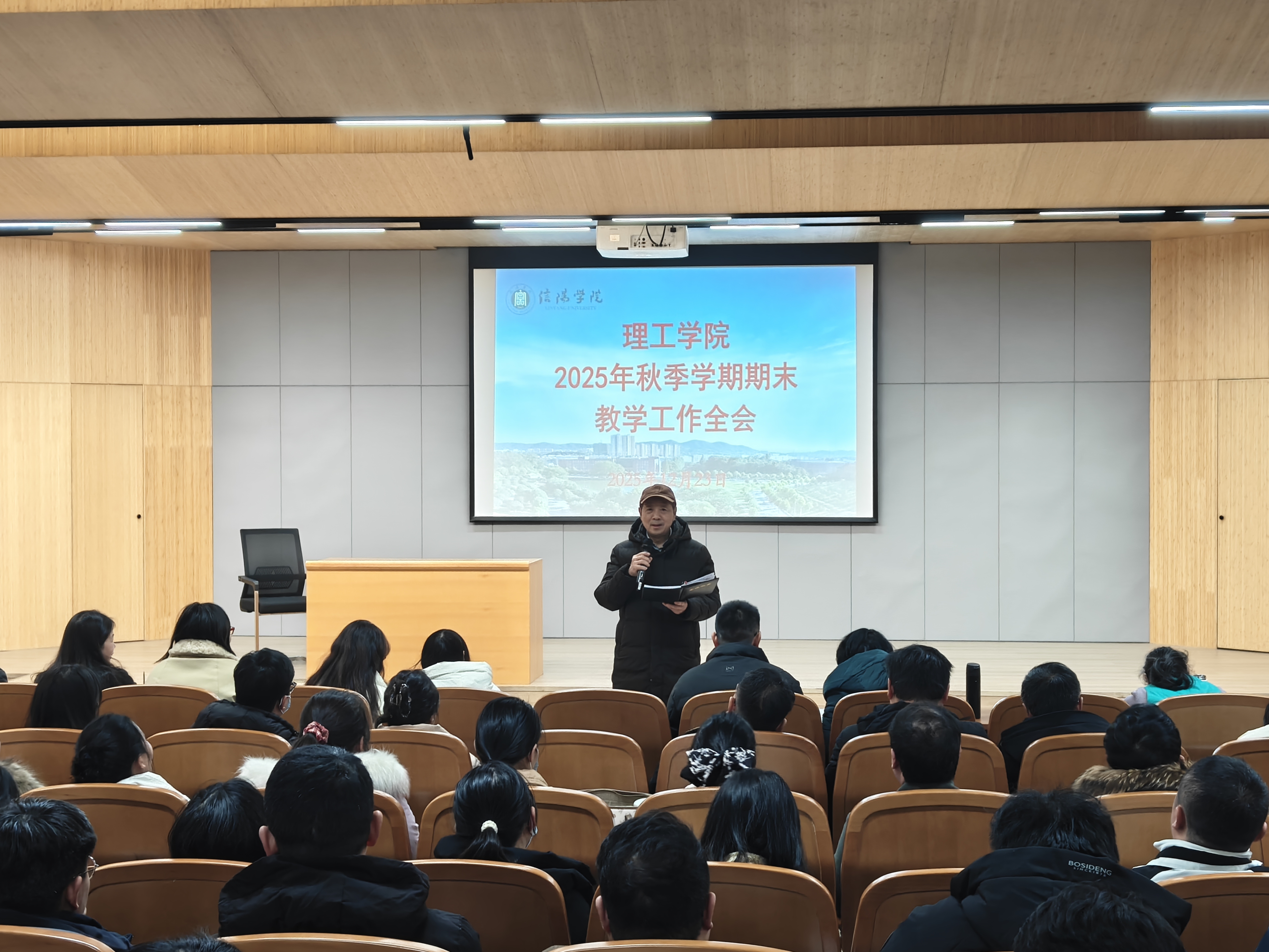12月23日下午,理工学院在图书馆101会议室召开2025年秋季学期期末教学工作全会。理工学院院长肖生发、教学副院长李晓严以及全体教师参加了会议。会议由李晓严主持。