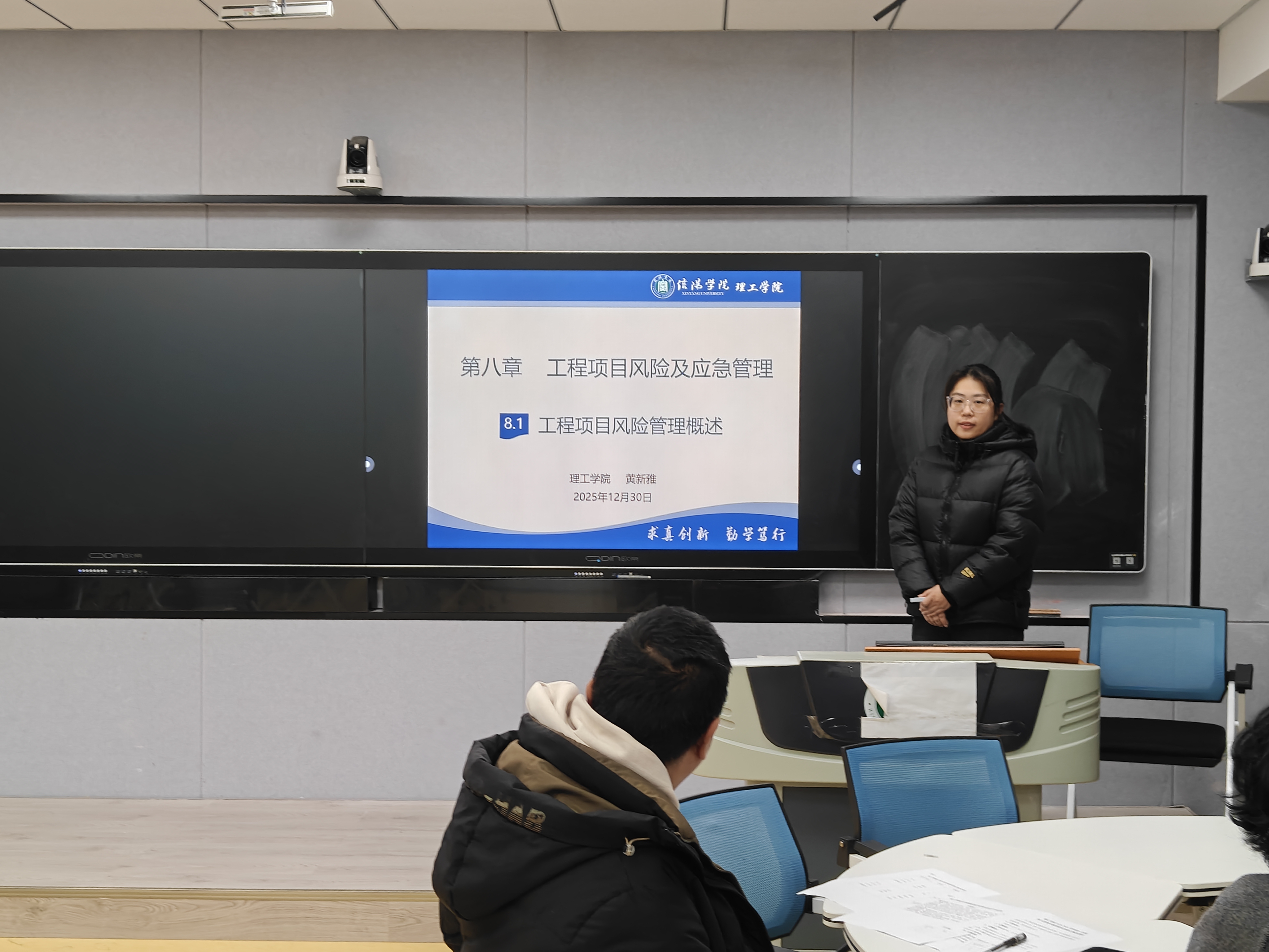 12月30日下午,理工学院在人文楼南楼103和113教室举行2025-2026学年第一学期新入职教师教学技能比赛。比赛邀请了校督导专家张小玉教授,机械电子工程教研室曹国廷、王秀丽教授,汽车工程教研室杜来林教授、王思满老师,大学物理教研室贾小平副教授担任评委。比赛分两组进行,分别由张小玉和曹国廷主持。