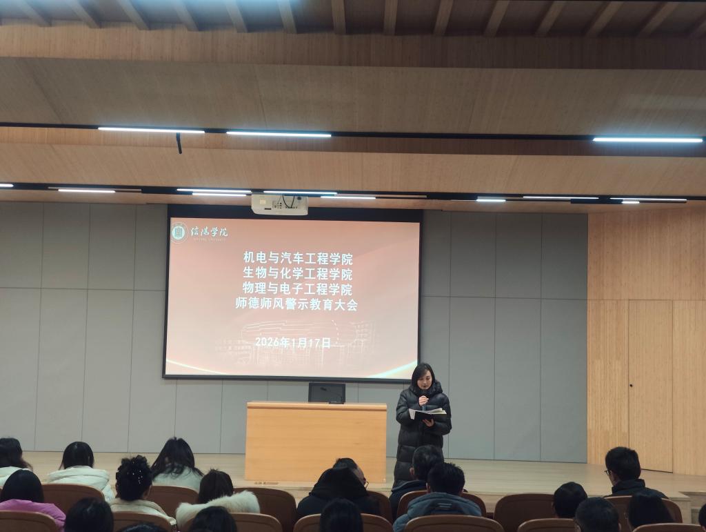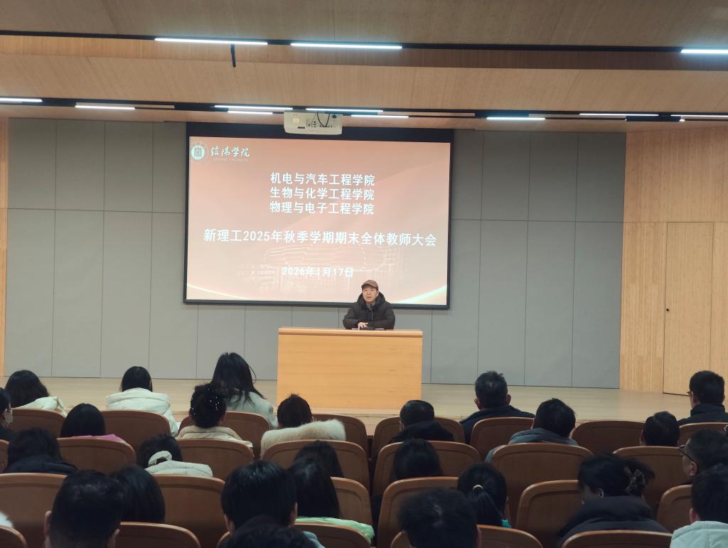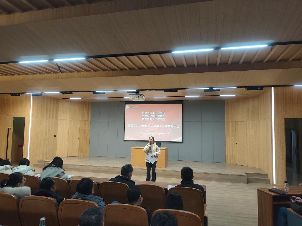 为全面总结2025年秋季学期工作成效,凝聚发展共识,部署寒假重点任务,1月17日上午,机电与汽车工程学院、生物与化学工程学院、物理与电子工程学院等三院联席召开2025年秋季学期期末全体教师大会。三个学院院长、书记、教学副院长以及全体教师参会。会议由党总支书记赵佳主持。