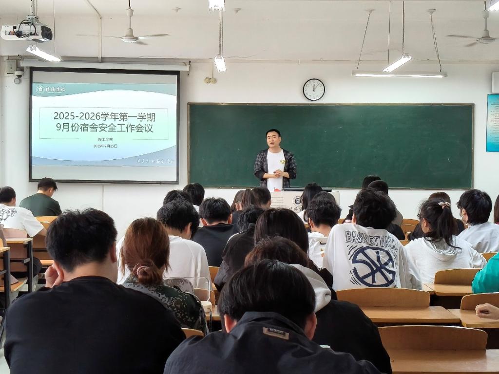 为了做好新学期宿舍管理工作,提高宿舍管理水平,9月25日,理工学院在理工楼505开展了2025-2026学年第一学期9月份宿舍安全工作会议。宿舍管理负责人杨康强老师、学生会部分学生干部出席本次大会,理工学院所有班级班委代表和宿舍长代表参与此次会议。