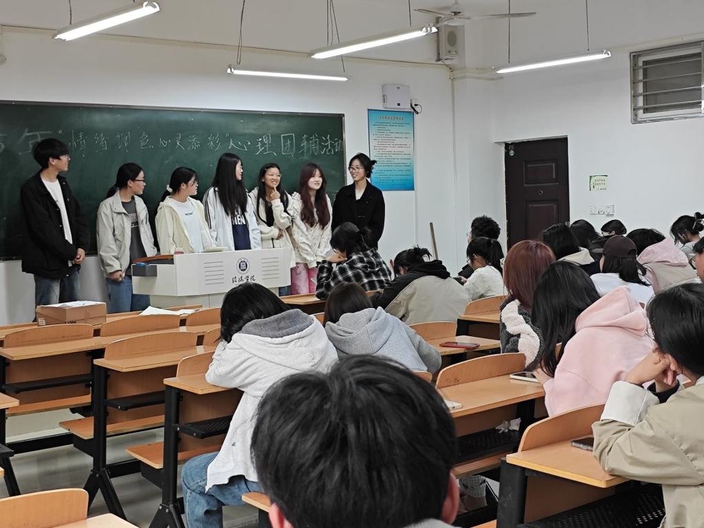 本次心理团辅活动,学院采取线上线下相结合的方式深入开展宣传。线上通过各班班长转发宣传消息,加入QQ群,进行报名活动,线下在理工楼410教室开展了趣味小游戏。活动现场,“三字造句”“名字接龙”“抓鸭子”等游戏帮助同学们释放了压力,增强了心理调适能力,提高了抗压能力。同学们积极投入到游戏当中,现场欢声笑语,其乐融融,将活动推向高潮。