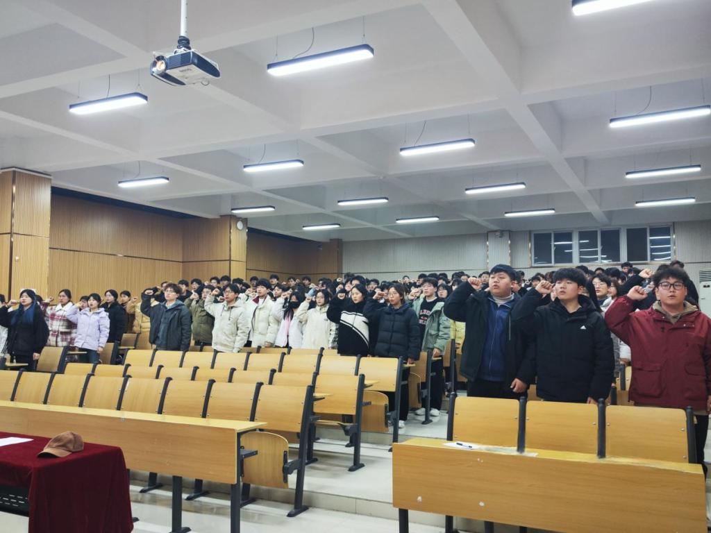 团总支学生学习部部长赵俊涵宣读了《2025年春季学期学风建设策划书》。为表示建设理工学院学风的决心,全体参会同学在学生会分管主席焦毓琛的带领下进行“争创学风建设先进班集体”的宣誓。