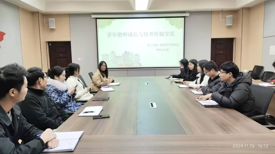 活动开始,魏新玲副教授讲述了青年教师培养方案、教研室发展现状及未来发展方向,同时也对教研室老师提出了三个期望:找准方向、富有激情、与时俱进。接下来,曹平丽老师从思想道德与师德师风建设、教学能力提升、科研能力提升和专业建设四方面分享自己在职业成长过程中遇到的问题和学到的经验。随后,地理科学教研室全体教师对自己职业成长中遇到的问题和经验进行热烈的讨论和交流。魏新玲老师指出地理知识和地理教学均要来源于生活,提升到理论,再服务于生活,环环相扣,提高学生学习兴趣。吕海成老师提出,教学与科研是一体的,它们互相促进、相辅相成,科研能够增加教学的广度与深度,教学能够带动与促进科研。教研室其他老师也提出了自己在职业发展中遇到的困惑,同时也就教学技能的提升、科研和教改项目的申报提出自己的意见和建议。