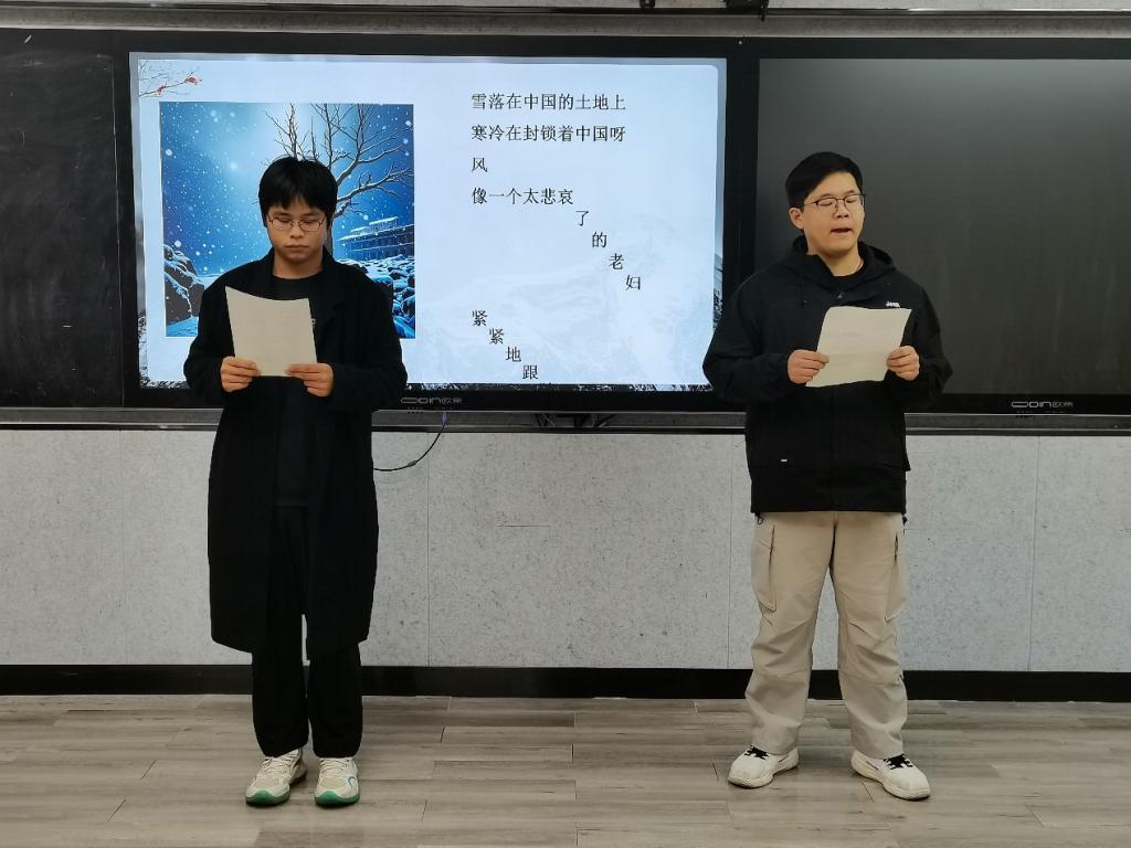 选手们声情并茂的表达了自己对中华红色经典的热爱,以饱满的热情、生动的语言和真挚的感情表达了对中华红色经典认同,在比赛中展现出了新时代青年的风采。其中,王英曼和张佳颖同学激情诵读了《党旗照耀着祖国》,她们以中国工农红军长征等例子进行讲述,重现了共产主义革命道路的艰辛。张钺同学和郭亚梦同学用优美的语言、真挚的情感展示了《青春中国》中当年青年人坚忍不拔的精神。在江亚楠、李长博同学的诵读下,《雪落在中国的土地上》在观众们面前呈现了革命道路所历经的艰难险阻。