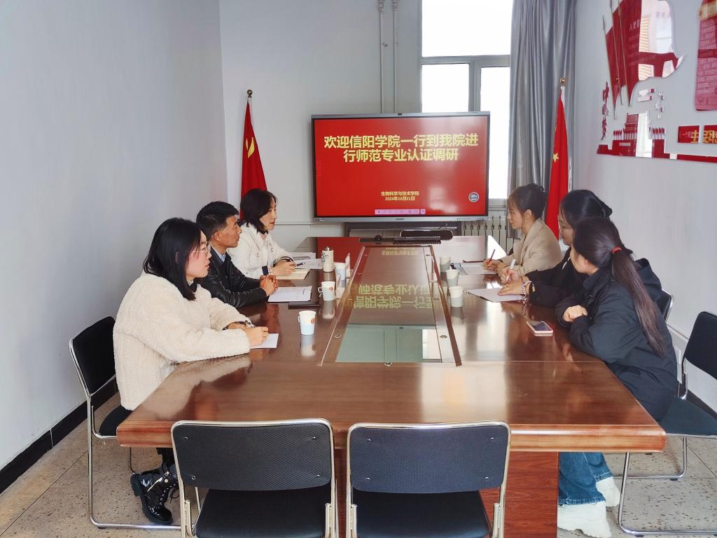 2024年10月21日下午,信阳学院理工学院生物科学专业教师臧明丽率领李子圆、李盼盼两名学生成立代表团,赴太原师范学院生物科学与技术学院就“生物科学专业师范认证工作”进行调研交流。太原师范学院生物科学与技术学院院长武晓英、党委副书记臧丰、副院长燕平梅、副院长赵文婧等出席会议。