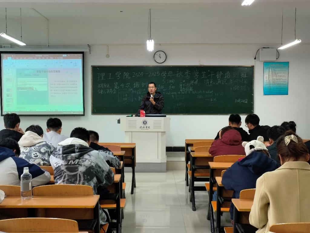 为了进一步加强理工学院学生干部队伍的建设,提升他们的新闻敏感度与文字表达能力,10月21日,理工学院于理工楼502召开了2024–2025学年秋季学生干部培训班第四次学生干部培训。辅导员甘玉峰老师作为主讲老师出席此次会议,24级本科及专升本学生干部、学生会干部参与培训。