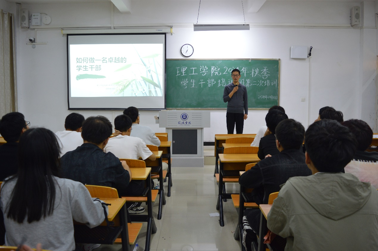 为了提高理工学院学生干部的管理和组织能力,帮助学生干部更好地了解自身角色,10月16日,理工学院在人文楼117举行了2024-2025学年秋季学生干部培训班第二次培训。杨晓杰老师主持此次活动,理工学院学生会干部、24级本科及专升本学生干部参加培训。