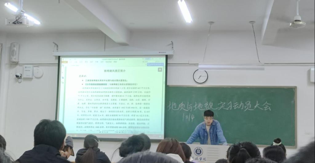 10月14日下午,理工学院地理科学专业在人文楼312教室顺利开展地质与地貌实习动员大会。2023级地理科学专业的全体学生参加了此次动员会,动员会由地理科学教研室张世雄老师主持。