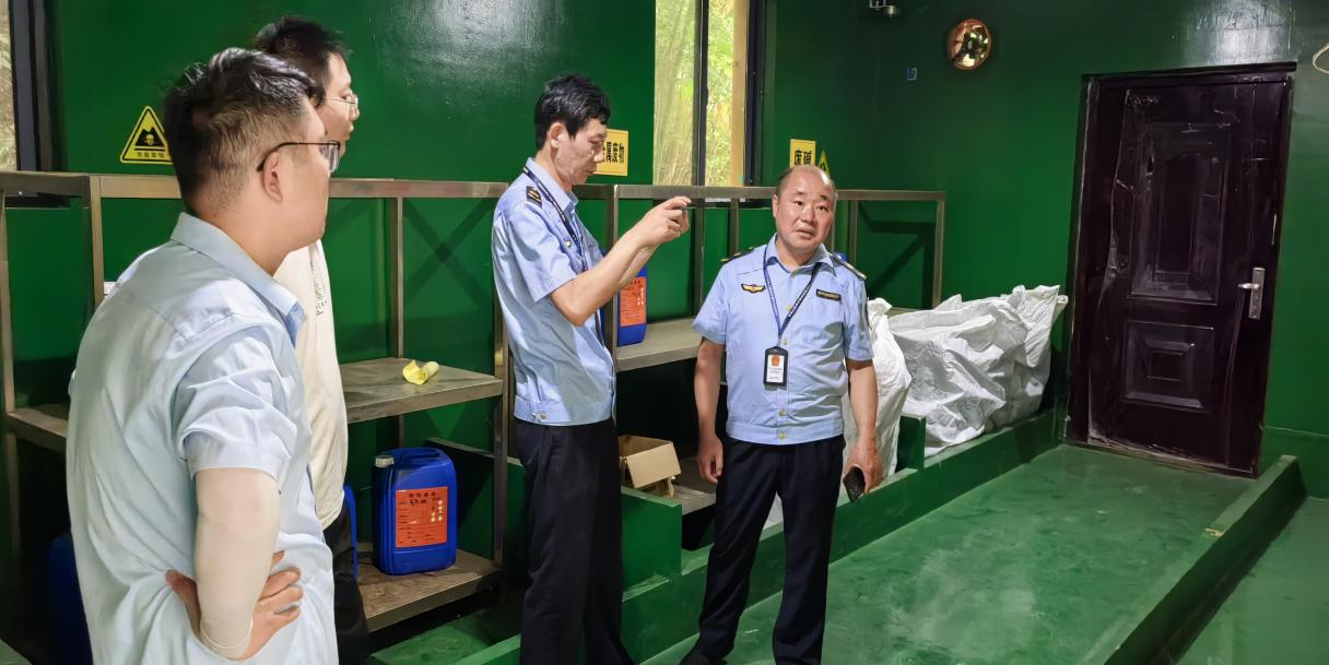 余队长一行详细检查了学院危废中转站,实地检查了学院化学品中转站危险废物暂存库运行状况,查阅了实验室危险废物回收记录、出入库台账、转运联单、危险废物管理制度和危险废物转运合同等相关材料,听取了杨主任关于实验室危险废物管理工作的情况汇报。
