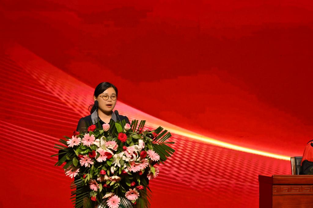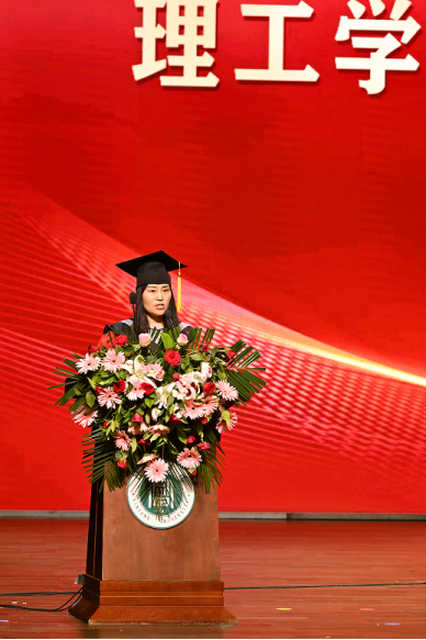 2023级生物科学本科1班张钺同学向全体毕业生朗读了《理工学院毕业寄语》。