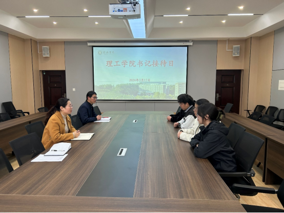 为进一步推进师生反馈工作机制,切实解决学生在日常生活和学习过程中遇到的问题和困难,搭建学校-学生之间有效沟通平台,更好地为学生服务,3月13日下午,理工学院在理工楼201开展了“院领导接待日”活动。学院党总支副书记张红梅、学工秘书杨晓杰接待了学生代表,辅导员杨康强做记录。