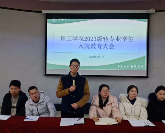 学工秘书杨晓杰首先向全体转专业新生介绍了与会领导、老师,并对转专业新生表示欢迎。教学副院长李晓严进行了入院教育,对转专业的事情和相关专业做了详细的解释,向参会的转专业新生具体介绍了理工学院的师资、设备、理工荣誉等院情以及优良学风,鼓励新生们尽快融入理工大家庭,利用好理工学院的优良资源,借助好理工学院这个平台,提升自己的专业素养,增强创新创业能力,为自身未来打下坚实基础,为理工学院的发展贡献自己的一份力量。