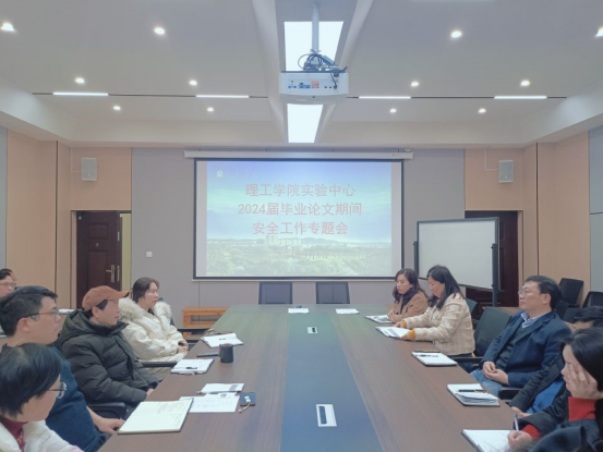 为了让2024届毕业生增强安全防范意识,进一步加强学院安全管理工作,3月5日下午,实验中心2024届毕业论文期间安全工作专题会在理工楼201会议室召开,理工学院院长肖生发、教学副院长李晓严、实验中心主任杨潇剑和化学教研室及生物教研室全体教师出席了此次会议,杨潇剑主持了会议。
