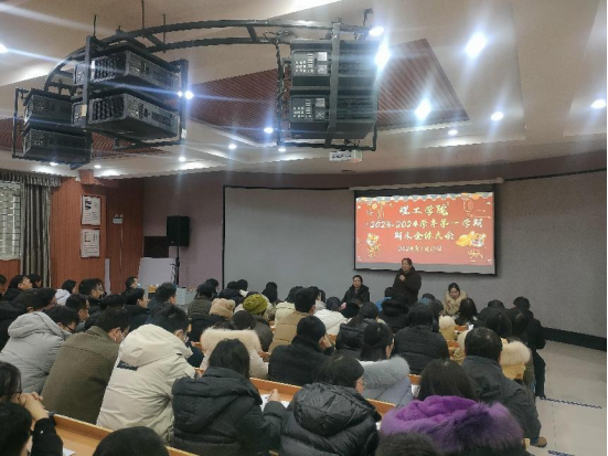 1月18日下午,理工学院在理工楼116室召开了2023-2024学年第一学期期末全体教师工作会。院长肖生发、党总支副书记张红梅、教学副院长李晓严、专家教授和全体青年教师参加了此次会议,李晓严主持了会议。