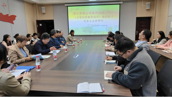 11月7日下午,理工学院在理工楼201会议室举行公开教研活动。本次教研活动的主题是“中学化学教学设计的课程教学改革与实践”,由化学学科带头人姚素梅教授主讲。特别邀请了校级教学督导专家吴锐教授、邱荣茂教授、杨保华教授、侯秀红教授、任柏林教授以及理工学院院长肖生发、教学副院长李晓严莅临指导。化学教研室全体教师和学院其他教研室教师代表观摩研讨,化学教研室主任黄艳伟主持了研讨会。