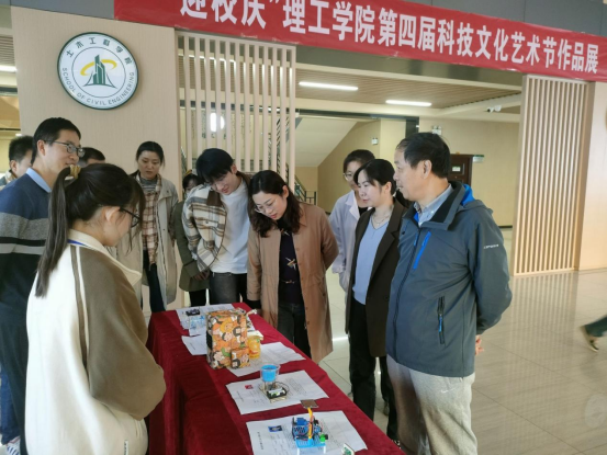 展演当天,理工学院院长肖生发、党总支副书记张红梅、副院长李晓严等一众领导老师来到了活动现场参观指导,在学生部成员解说各个作品的创新点和实用性后,肖院长称赞选手们独特的创新设计水平和优秀的实践动手能力,表示每件作品都从不同角度展现了科技的多彩魅力,对本次科技文化艺术节作品展演的意义及效果表示肯定,同时,肖院长对作品的创新性提出了更高的要求,对第五届理工学院科技艺术文化节的举办抱有更大的期盼。