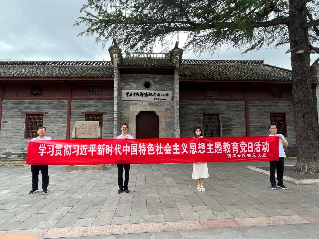 为庆祝中国共产党成立102周年,重温党的光辉历程,弘扬伟大建党精神,7月4日上午,理工学院党总支前往新县鄂豫皖苏区首府旧址开展学习贯彻习近平新时代中国特色社会主义思想主题教育党日活动。理工学院学生第一党支部书记杨晓杰、学生第二党支部书记甘玉锋及党员教师张锐、田亚星一行参观了首府旧址并进行入党宣誓。