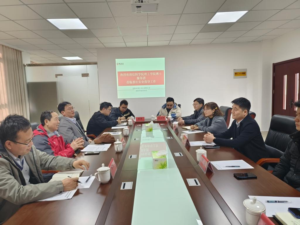2月24日下午,理工学院院长肖生发一行赴景红实业有限公司走访参观,双方就信阳学院——景红实业共建省级示范性研发中心暨科研项目交流会进行了友好交谈。陪同前往的有鲁辉博士、张浩博士、杨潇剑、王思满等理工学院老师。景红实业有限公司总经理郑友军及企业相关人员陪同参观了公司并参与了本次交流和研讨。