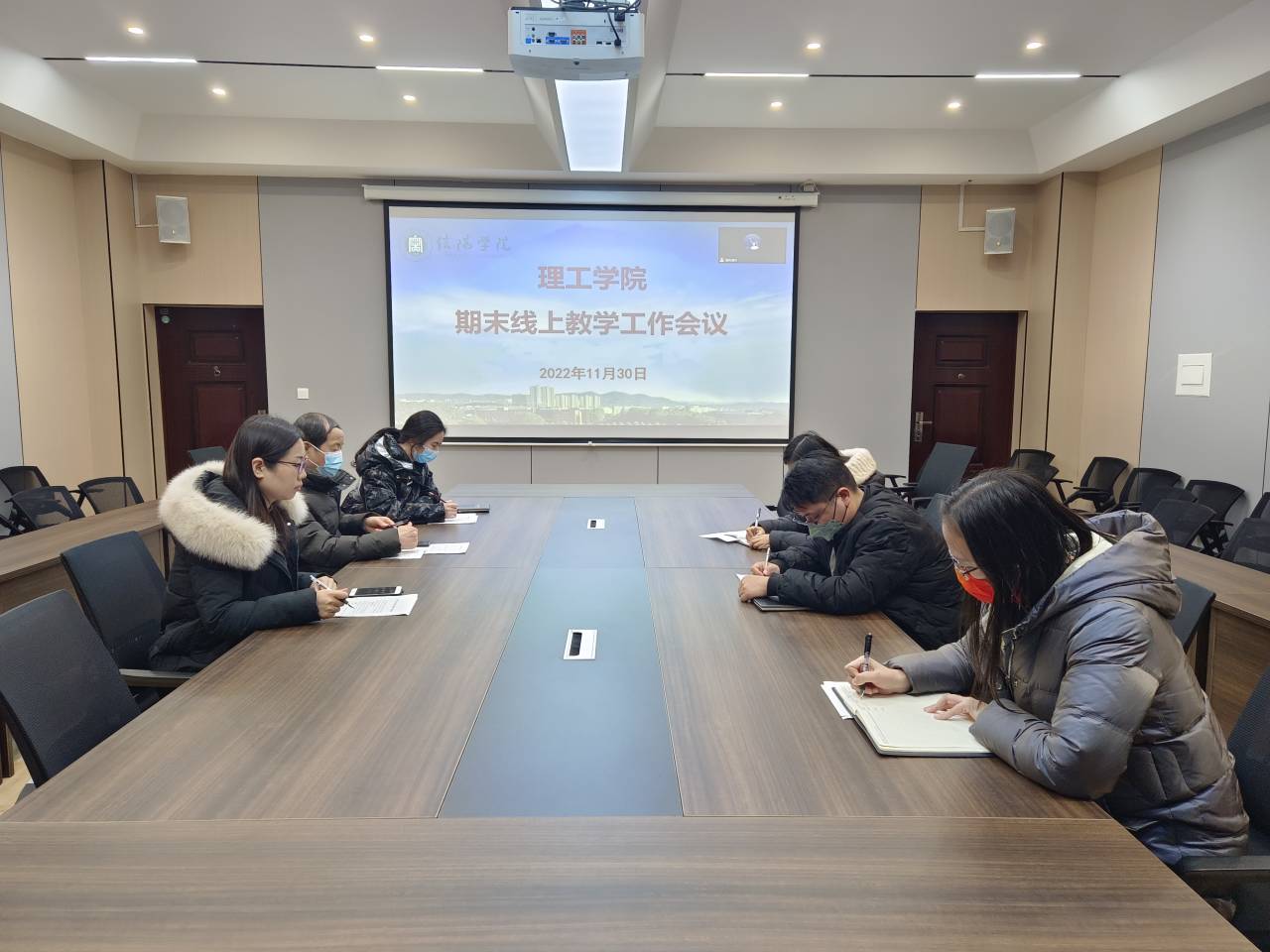 11月30日下午,理工学院在201会议室和线上同时召开期末线上教学工作会议,理工学院院长肖生发、党总支副书记张红梅、教学副院长李晓严和全体行政人员参加会议,各教研室主任在线上参加了会议。