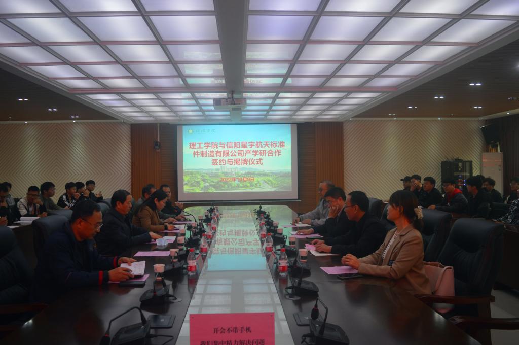 10月9日上午,理工学院与信阳星宇航天标准件制造有限公司产学研合作签约与揭牌仪式在人文楼208会议室举行。信阳星宇航天标准件制造有限公司董事长陈强,副总经理刘德辉、杨勇、陈雪华,理工学院院长肖生发、党总支书记张红梅、教学副院长李晓严和部分师生代表参加了上述仪式。张红梅主持了签约仪式。