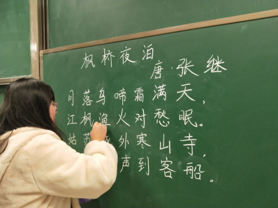本次比赛分为三组:钢笔字、粉笔字和毛笔字组,比赛现场气氛紧张,同学们精神饱满。钢笔字组的参赛选手,手执钢笔,全力投入,精心书写;粉笔字赛场上大家也都格外认真,下笔动作都经过认真思考,努力追求书写的工整清秀;书写毛笔字时,有的同学洋洋洒洒,即席挥毫,有的同学则不急不躁,努力展示自己最好的水平。比赛过程中,评委老师走动观察学生的书写过程,最后工作人员将书法作品收齐交与老师进行现场评分。经过评比,兰宛平、赵露迪同学荣获钢笔字组一等奖;李慧君、赵露迪同学荣获粉笔字组一等奖;王怡菲同学荣获毛笔字组一等奖。