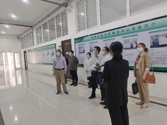 在理工学院肖生发院长陪同下,刘奎局长一行人参观了信阳学院分析测试中心,并由李晓严对中心情况进行讲解介绍。