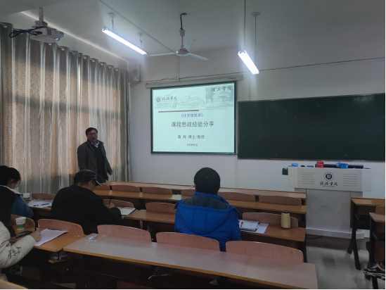 为进一步贯彻落实全国高校思想政治工作会议精神以及学校思想政治工作实施方案,落实立德树人根本任务,充分发挥课堂教学育人主渠道作用,积极推进课程思政建设。12月23号下午,我院在理工楼604、605教室组织开展了第三场课程思政经验交流会,院长肖生发、党委副书记张红梅、教学副院长李晓严以及全体教师参加本次会议,会议由副院长李晓严、教学秘书赵丹主持。学校课程思政建设工作小组组长刘志新等四人莅临指导,另外也邀请了学校教学督导专家吴锐教授参加此次交流会。