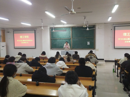 12月14日下午,理工学院在人文楼106教室举行学习大别山精神系列教育活动表彰大会。学院党总支副书记张红梅、学工秘书杨晓杰出席表彰大会,全体辅导员及2021级学生代表参加大会。