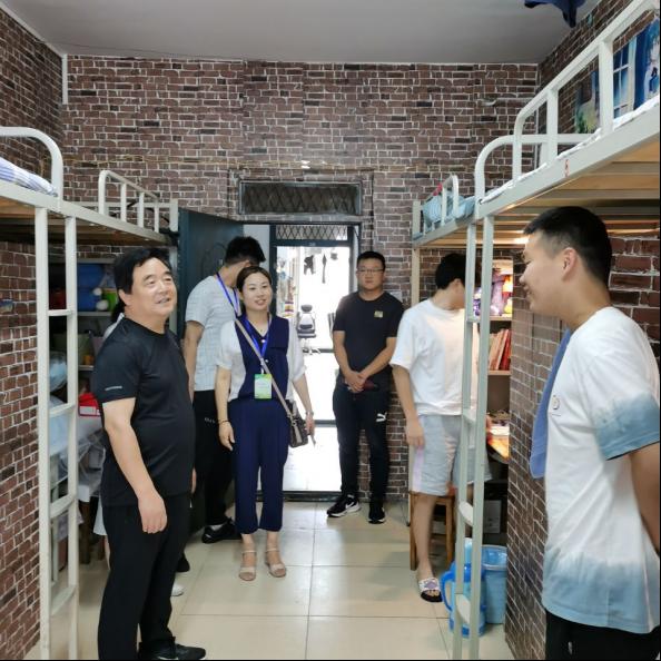 6月26日上午,校党委书记褚金海、校党委办公室主任娄琪、党办杨浩然老师等在理工学院党总支副书记张红梅、学工秘书杨晓杰、辅导员徐国文陪同下,深入学生7号楼公寓走访学生,实地查看学生宿舍安全、文明、卫生等情况。