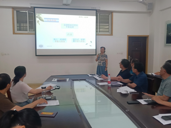 本次会议还专门邀请化学学科带头人姚素梅教授针对一流课程的申报进行了讲授。姚教授以《如何做好一流本科课程的申报和准备》为题进行了讲解,从一流本科课程的类型及申报选择、精品在线开放课程建设与申报、混合式一流课程申报与准备等三个方面给每一位老师介绍了申报各类一流课程中应当注意的问题,要求各位老师认真撰写申报书、做好申报前的各项准备工作,在教学工作中不断创新教学方法和手段,争取早日申报成功。