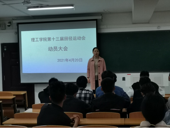 4月20日下午,理工学院在理工楼509召开第十三届春季田径运动会动员大会。出席本次会议的有理工学院党总支书记张红梅、学工秘书杨晓杰老师、辅导员徐国文老师、理工学院第十四届团总支学生会体育部全体成员以及参加第十三届春季田径运动会的全体运动员。
