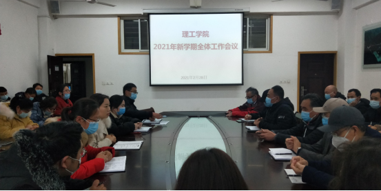 2月28日下午,理工学院在理工楼201会议室召开2021年新学期全体教工工作会议。学院全体教工参加了会议,樊瑞主持了会议。