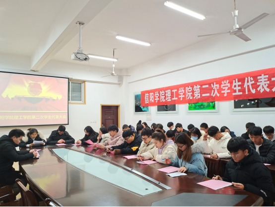 大会在庄严肃穆的国歌声中拉开序幕。根据会议议程,黄艳伟向参会人员传达了《关于做好信阳学院第二次学生代表大会代表选举工作的通知》文件精神。按照规定程序,大会表决通过了孙晓磊为监票人,王思雨、尹晨熙为计票人。随后,黄艳伟宣读了校团委关于理工学院出席第二次学生代表大会候选人预备人选的批复文件并介绍了候选人基本情况。根据公开、公正、公平原则,通过无记名投票,选举产生出了刘嘉等13名学生代表参加信阳学院第二次学生代表大会。