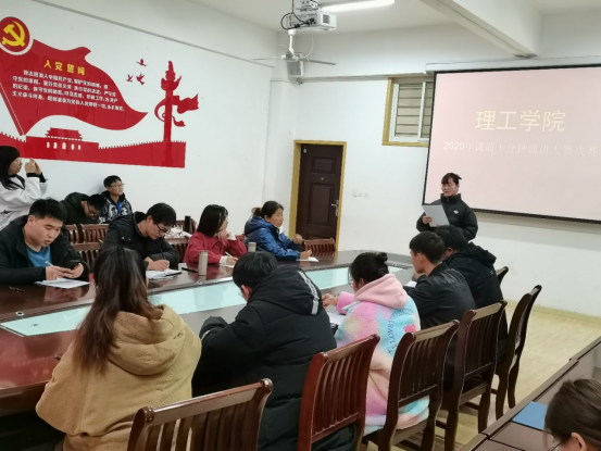 12月24日,在理工楼201举行课前十分钟演讲比赛决赛暨颁奖仪式。本次活动是由理工学院学生会学习部组织,理工学院学工秘书杨晓杰、团总支书记黄艳伟、辅导员郑亚茹、学生会主席刘嘉,团总支副书记郭午阳等10人担任决赛评委。