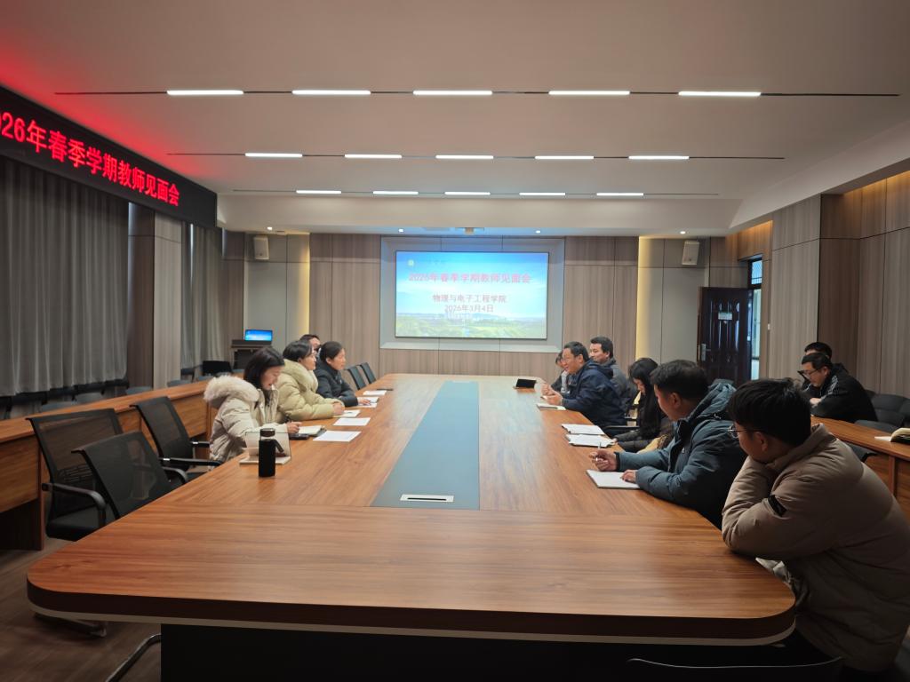 春启新程,聚力前行。为统筹新学期各项工作,凝聚育人合力,物理与电子工程学院于3月4日下午在社科楼109会议室召开2026年春季学期教师见面会。会议由教学副院长董玉静主持,党总支负责人赵佳出席并讲话,全体教师参会。