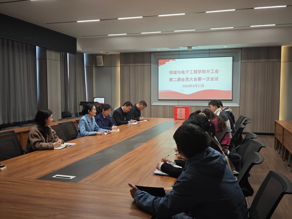 3月27日上午,物理与电子工程学院分工会第二届会员大会第一次会议在社科楼109会议室隆重召开。学院全体工会会员参会,会议由党总支负责人赵佳主持。