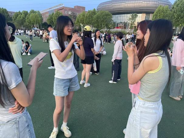 活动一:传声筒。充满欢乐与挑战的“传声筒”游戏迅速点燃现场气氛。各队成员摩拳擦掌,当第一人拿到题目后,立刻用生动的音效和夸张的动作进行演绎,将信息传递给下一位队友。随着传递的进行,题目在一次次“加工”中变得趣味横生,有的队伍信息传递“走样”,引得全场爆笑;有的队伍配合默契,成功猜对题目,赢得阵阵掌声。在这个过程中,同学们不仅收获了欢乐,更在合作中学会了理解与沟通,同时也释放了内心的压力,以更轻松的心态面对生活。