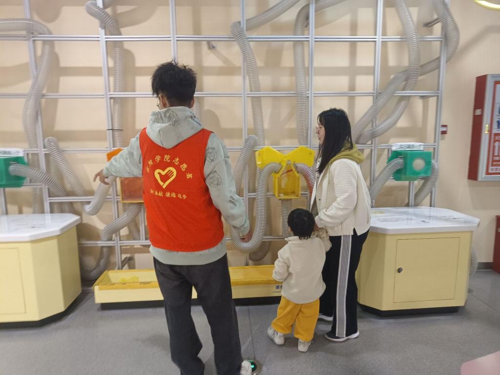 在科技馆内,信阳学院的志愿者们成为了一道亮丽的风景线。在科技馆经过简单而有效的培训后,他们迅速投入到各自的岗位上。面对不同年龄段、不同知识背景的游客,志愿者们以通俗易懂、生动有趣的方式介绍科技馆内展品背后的科学原理。无论是关于宇宙奥秘的天文展区,还是展现微观世界的生物展区,志愿者们的讲解都像是一把把打开科学大门的钥匙,满足了游客们对科学的好奇心。