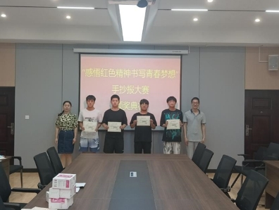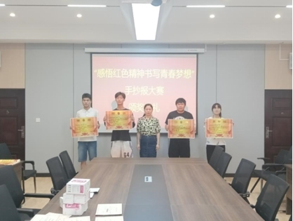 为深入贯彻大别山精神,重温光荣岁月,激发青年同学的爱国热情,颂扬民族精神,使学生们铭记历史,沿着先辈的光荣路程,为完成自己的青春使命不断努力。5月25日理工学院大别山精神传承社在理工楼201会议室举行了感悟红色精神,书写青春梦想”手抄报大赛颁奖仪式。党总支副书记张红梅、大别山精神学习传承社副社长杨晓杰、甘玉锋、黄艳伟老师出席了本次颁奖仪式。