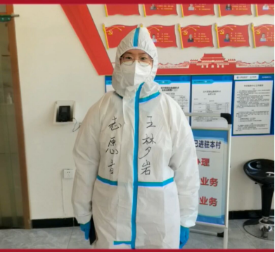 2022年1月14日起,2021级地理科学本科1班的王梦岩同学在村干部的领导下,在核酸检测的站点听从安排,严格按照流程开展工作,穿上防护服,在设置的卡点处进行值班,为前来做核酸检测的人员进行身份信息登记,与此同时积极维持核酸检测秩序,以提高工作效率。从9:00开始,每天几个小时的信息登记,并且在路口宣传疫情防控知识,劝返探亲访友人员。