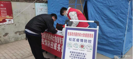 这次疫情也袭击了时广源的家乡杞县。在这个寒风凛凛的冬天,他选择了当一位志愿者。他每天帮助社区工作者们测量外来人员的体温以及核查行程码健康码。每隔几天还要和社区工作者们一起挨家挨户的去上门登记个人信息。