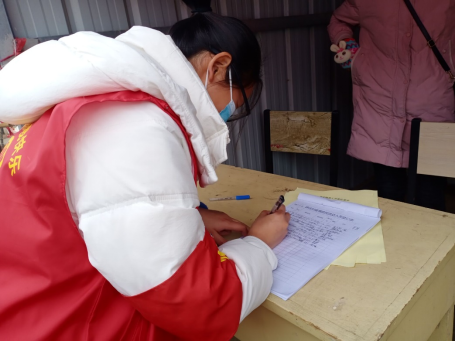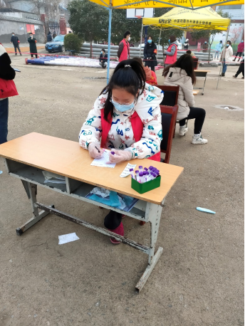 身为大学生的张雪莉,响应理工学院团总支和当地党委政府号召成为一名疫情防控志愿者。1月6号下午,张桥镇青年志愿服务队协助全镇核酸检测点开展全员核酸检测志愿服务工作。她同其他志愿者被派到检测点为别人核酸检测服务。她的工作则是为别人的预约码扫码打印名单,十人一组打印好名单之后交到其他志愿者手里,让村民按顺序排队做核酸检测。