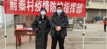 1月3日,刘慧同学参加到河南省南阳市南召县太山庙乡梁沟村志愿服务小组中,配合村干部领导下,带上袖章,戴上口罩,在十字路口等主要道路,进行值守,对村内来往车辆进行登记和盘查,为村里村外人员进行信息登记,并测量体温。此外,在村领导的安排下,她们利用自身所学,走进村民中,为村民发放抗击疫情宣传单,告诫村民,家里如果有从高风险地区回来的家人,一定要如实告知。