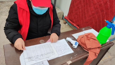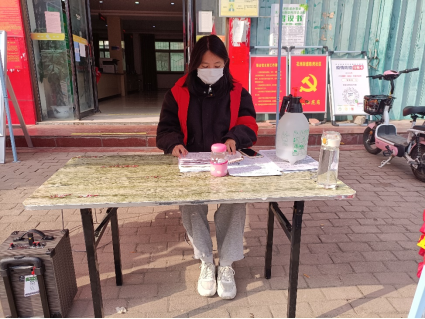 杨月同学主动报名了防疫工作的志愿者,成为一名社区志愿者。作为志愿者在此次疫情防控的工作主要是在社区进行值班,对来往的人员进行体温测量并登记。