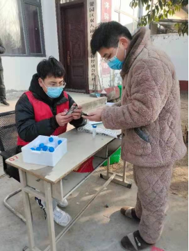 靖冠超同学在寒假期间加入了抗击疫情志愿者的队伍。作为志愿者,在郑州市第三、四、五轮全员核酸检测时,提醒村民要保持一米间隔,戴好口罩,做好防护。农村老人有些不会使用智能手机,他就帮助他们进行登记信息,同时维持好现场的秩序。每日在卡点处核查外来入村人员信息,检查健康码、行程码,提醒外出人员做好防护等。