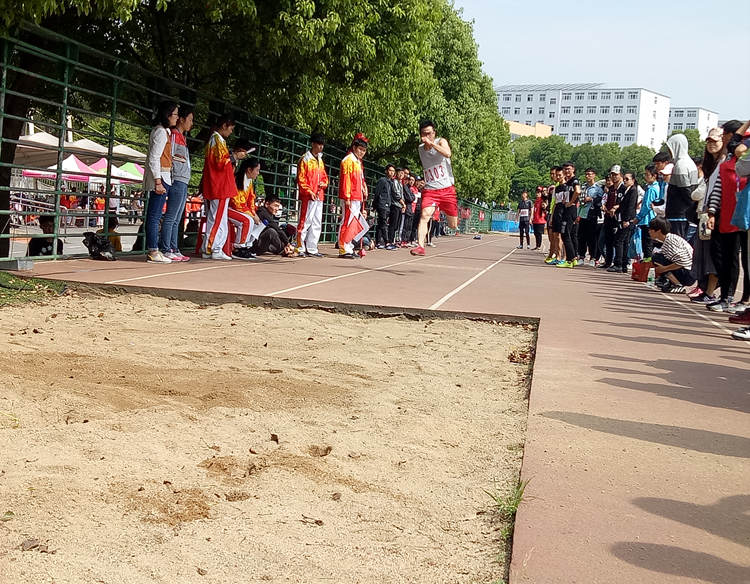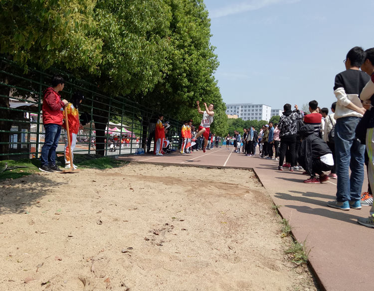 碧蓝的天空,万里无云。4月28日上午在田径场信阳学院第十届春季运动会――三级跳远如期举行,我院学子有多名参赛。