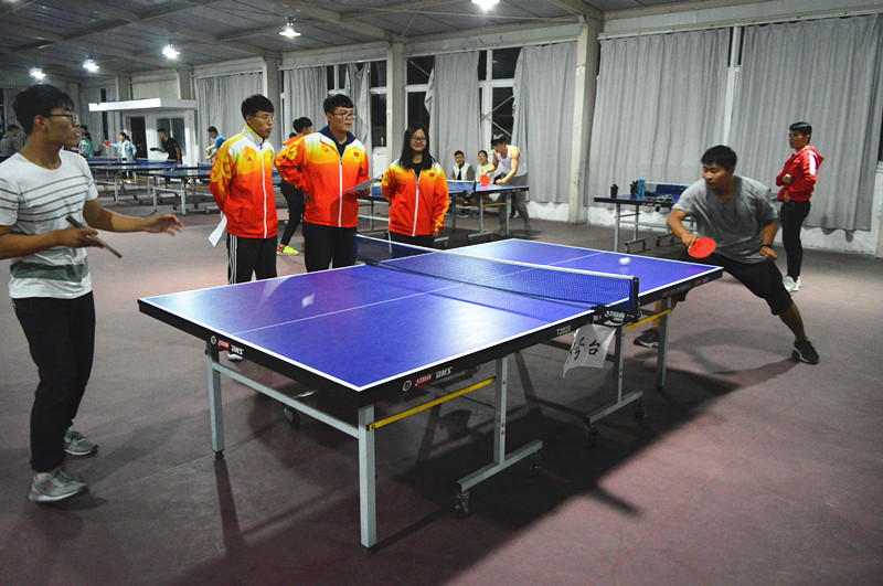 为了丰富大学生业余生活,增强学生体质,促进学生交流,信阳学院乒乓球协会于10月18日晚7点在数计楼5楼乒乓球室举办迎新乒乓球赛团体赛。参赛双方分别为理工学院代表队和社会与科学学院代表队。