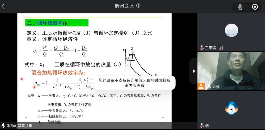 12月10日,理工学院汽车工程教研室全体教师在腾讯会议召开青年教师试讲活动,主要内容为朱帅老师试讲《发动机原理》课程。本次线上会议由王思满老师主持。