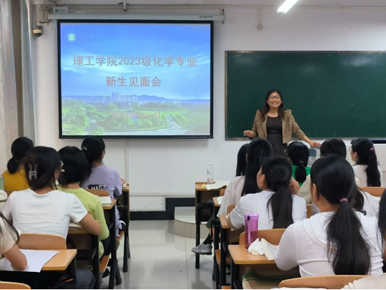 会上,黄艳伟分别围绕化学专业简介、师资队伍、化学专业教学条件、人才培养质量和社会声誉等方面对所负责专业进行深入解剖,并介绍了优秀校友代表,观看优秀校友的寄语,使2023级新生对自己的专业和发展方向有了初步的认识。此外,黄艳伟还针对大学生要端正学习态度、掌握正确的学习方法、合理科学安排时间、并对培养专业兴趣给出了建议,鼓励新生尽快适应大学生活,明确个人的生涯目标。最后,黄艳伟与同学们进行了交流。